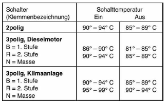 Der thermoschalter ist zu prüfen, wenn bei heißem motor der lüfter nicht einschaltet. Prüfvoraussetzung: kühlmittelregler und verschlußdeckel für kühlsystem sind in ordnung.